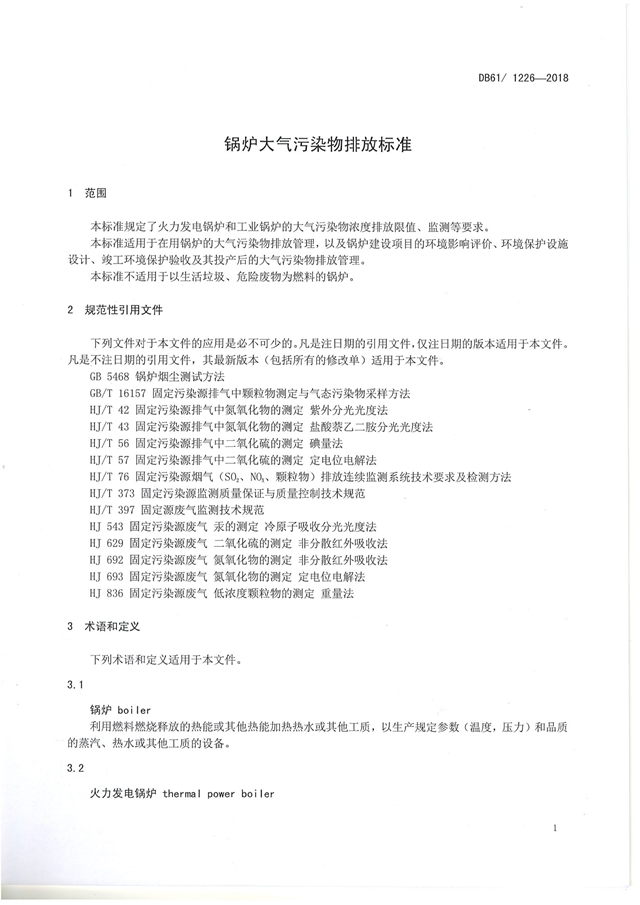 相關資料下載:鍋爐大氣污染物排放標準DB 61_1226—2018.pdf