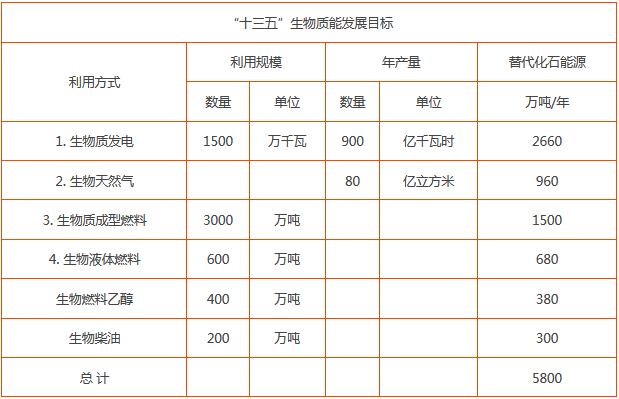 到2020年,生物質(zhì)能基本實(shí)現(xiàn)商業(yè)化和規(guī)?;谩I镔|(zhì)能年利用量約5800萬(wàn)噸標(biāo)準(zhǔn)煤。生物質(zhì)發(fā)電總裝機(jī)容量達(dá)到1500萬(wàn)千瓦,年發(fā)電量900億千瓦時(shí),其中農(nóng)林生物質(zhì)直燃發(fā)電700萬(wàn)千瓦,城鎮(zhèn)生活垃圾焚燒發(fā)電750萬(wàn)千瓦,沼氣發(fā)電50萬(wàn)千瓦;生物天然氣年利用量80億立方米;生物液體燃料年利用量600萬(wàn)噸;生物質(zhì)成型燃料年利用量3000萬(wàn)噸。