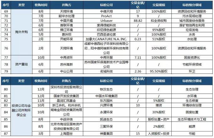 2018年環(huán)境產業(yè)海外并購案例統(tǒng)計