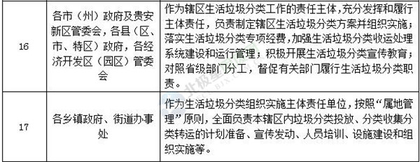 (一)落實政府責任。省生態(tài)文明建設領導小組統(tǒng)籌指導全省生活垃圾分類工作,省發(fā)展改革委、省住房城鄉(xiāng)建設廳承擔具體職責。市、縣級政府對生活垃圾分類工作承擔主體責任,實行市(州)政府、貴安新區(qū)管委會、縣(市、區(qū)、特區(qū))政府行政首長負責制,省生態(tài)文明建設領導小組對各市(州)政府、貴安新區(qū)管委會、縣(市、區(qū)、特區(qū))政府實行目標責任制管理。各級政府要提高政治站位,加強組織領導,建立健全生活垃圾分類工作部門協(xié)作機制,明確職責分工,努力形成上下聯(lián)動、齊抓共管的工作格局,確保認識到位、責任到位、投入到位、措施到位。