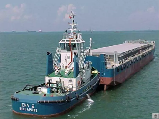 運送的船只由駁船由拖船兩部分組成,駁船裝置垃圾,并配有相應(yīng)長度的蓋子,防止垃圾在運送過程中被吹進附近海域。大土南轉(zhuǎn)運站距離實馬高島 33.3 公里,需要行駛 3 小時才能到達(dá)。