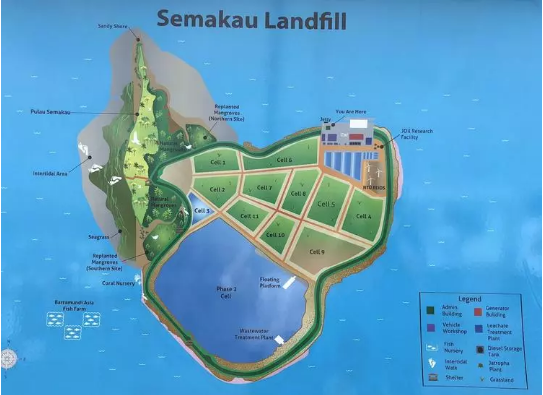 在新加坡的南部,有兩個小島 Pulau Sakeng(錫京島) 和 Pulau Semakau(實馬高島),它們之間圍成了一個占地 3.5 平方公里、容量 6300 萬立方米的垃圾填埋場——Semakau Landfill。