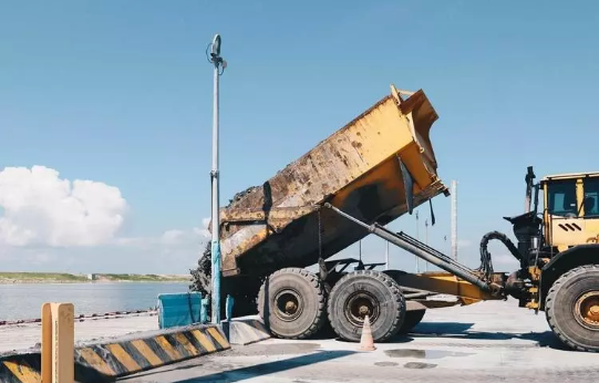 為避免影響周圍的海上物流正常運輸,拖船會在晚上進行運輸,白天進行傾倒。不管是裝貨區(qū)還是卸貨區(qū),都有帶有特殊設(shè)計的抓斗的大型挖掘機配合運送垃圾,每輛卡車的有效載荷在 35 噸左右。