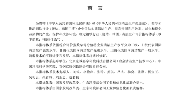 為貫徹落實《中華人民共和國清潔生產(chǎn)促進法》(2012年),建立健全系統(tǒng)規(guī)范的清潔生產(chǎn)技術指標體系,指導和推動企業(yè)依法實施清潔生產(chǎn),中華人民共和國國家發(fā)展和改革委員會、中華人民共和國生態(tài)環(huán)境部、中華人民共和國工業(yè)和信息化部整合修編了《鋼鐵行業(yè)(燒結、球團)清潔生產(chǎn)評價指標體系》 ?,F(xiàn)予以發(fā)布,并于公布之日起施行。