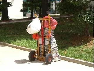 新加坡舊貨收集商推著手推車挨家挨戶收集有價值的家用廢棄物