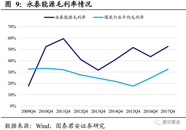 行業(yè)景氣低迷背景下的畸高毛利率。永泰能源是一家上市民企,主營(yíng)業(yè)務(wù)方向?yàn)殡娏?、煤炭和石化貿(mào)易。2014-2015年,煤炭行業(yè)產(chǎn)能過(guò)剩問(wèn)題嚴(yán)重,煤炭?jī)r(jià)格呈下滑態(tài)勢(shì),行業(yè)景氣度低迷,14、15年行業(yè)平均毛利率為21.66%和17.57%,分別同比下降11.76%和18.88%。而永泰能源卻在整個(gè)煤炭行業(yè)景氣低迷的背景下卻擁有相當(dāng)不錯(cuò)的毛利率,永泰在的煤炭業(yè)務(wù)14、15年毛利率分別為41.11%和51.64%,分別同比上升29.77%和25.61%。這在強(qiáng)周期行業(yè)低迷期是較為可疑的。