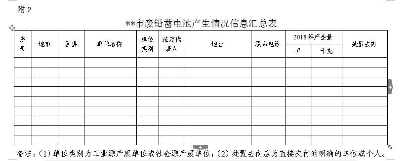2.市廢鉛蓄電池產(chǎn)生情況信息匯總表