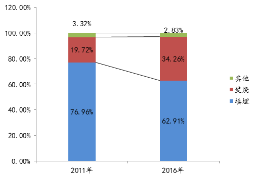 圖4 2011與2016年全國垃圾處理方式比較