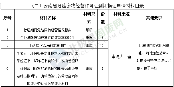 二、云南省危險(xiǎn)廢物經(jīng)營(yíng)許可證到期換證申請(qǐng)材料清單
