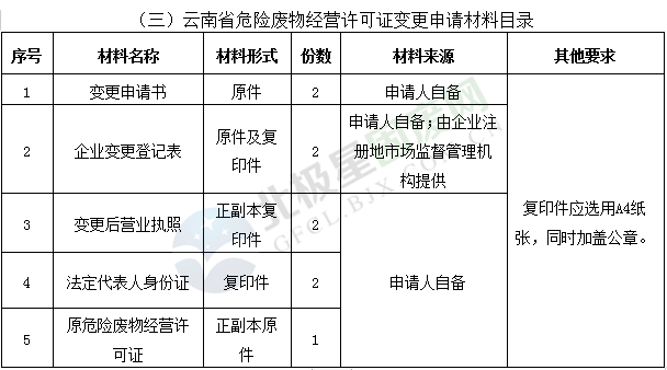 三、云南省危險(xiǎn)廢物經(jīng)營(yíng)許可證變更申請(qǐng)材料清單