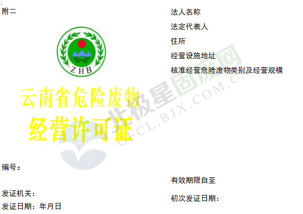 3.其他危險(xiǎn)廢物綜合經(jīng)營(yíng)許可證,由云南省環(huán)境保護(hù)廳審批頒發(fā)。