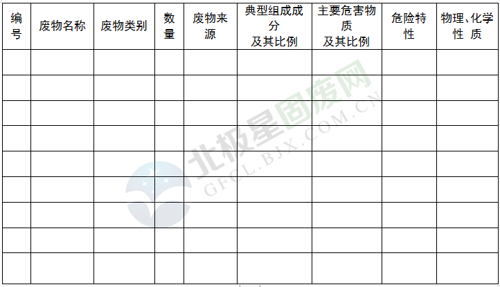 附:核準(zhǔn)經(jīng)營(yíng)的危險(xiǎn)廢物類(lèi)別、經(jīng)營(yíng)規(guī)模和處置方式明細(xì)表、污染防治措施、環(huán)境監(jiān)測(cè)制度、新產(chǎn)生的危險(xiǎn)廢物的管理計(jì)劃等。