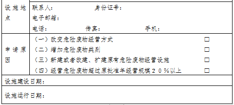 云南省危險(xiǎn)廢物經(jīng)營(yíng)許可證申 請(qǐng) 表