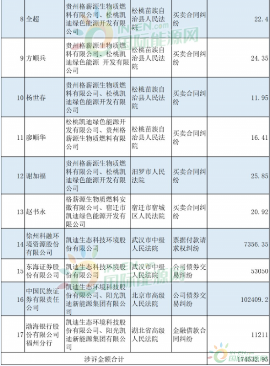 凱迪生態(tài)的危機(jī)在2018年又加深了一步,退市的傳言、拖欠工資的傳言時(shí)不時(shí)地出現(xiàn)在各大財(cái)經(jīng)媒體的熱點(diǎn)頭條里。2018年5月,凱迪生態(tài)的有息債務(wù)本息余額合計(jì)超過240億元,2019年1月18日,凱迪生態(tài)發(fā)布公告稱,目前逾期債務(wù)共計(jì)116.47億元,占公司最近一期經(jīng)審計(jì)凈資產(chǎn)106.33億元比例為109.54%。因?yàn)楦鞣N債務(wù)違約問題,凱迪生態(tài)已經(jīng)深陷訴訟泥沼,國際能源網(wǎng)記者調(diào)查發(fā)現(xiàn),僅2019年1月18-1月25日,短短的一周時(shí)間,該公司新增的訴訟案件已經(jīng)多達(dá)17起,累計(jì)涉訴金額高達(dá)17.45億元。