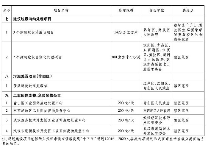 (三)推進建筑垃圾消納處置與資源化利用。采取山體修復(fù)、堆山造景、園林綠化等方式,規(guī)劃建設(shè)蔡甸區(qū)千子山、黃陂區(qū)空軍預(yù)警學(xué)院黃陂校區(qū)和金海馬家居等3處建筑棄土消納場所。建立“建筑棄料不出區(qū)、不出工地”管理模式,在成片拆遷、建設(shè)工地利用移動式設(shè)備,就地就近對建筑棄料進行處置和資源化利用。在漢陽區(qū)、青山區(qū)、蔡甸區(qū)、江夏區(qū)、東西湖區(qū)、黃陂區(qū)、新洲區(qū)、武漢東湖新技術(shù)開發(fā)區(qū)等區(qū)域各選址建設(shè)一座建筑棄料資源化處理廠。(責(zé)任單位:各區(qū)人民政府;配合單位:市發(fā)展改革委、市城管委、市城鄉(xiāng)建設(shè)委、市國土規(guī)劃局、市環(huán)保局)