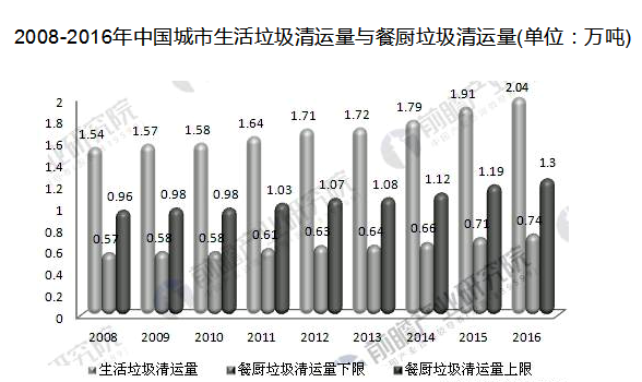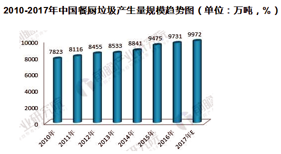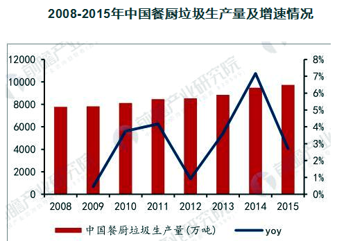 前瞻產(chǎn)業(yè)研究院最新一份研究報(bào)告稱,中國餐廚垃圾占城市生活垃圾比重大致為37%~62%,主要城市每年產(chǎn)生的餐廚垃圾總量不低于6000萬噸。如果就整個餐廚垃圾處理行業(yè)的發(fā)展空間而言,到2020年,餐廚垃圾產(chǎn)生量將達(dá)到12萬噸/天,全國餐廚垃圾處理市場空間可達(dá)600億元。