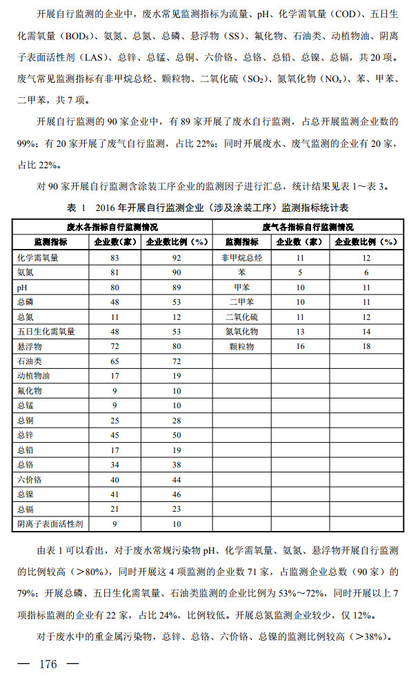近日,生態(tài)環(huán)境部發(fā)布了《排污單位自行監(jiān)測技術指南涂裝 (征求意見稿)》編制說明,對廢水指標監(jiān)測情況、廢氣指標監(jiān)測情況(包括部分揮發(fā)性有機物)、固體廢物來源情況等進行了統(tǒng)計與分析,全文如下: