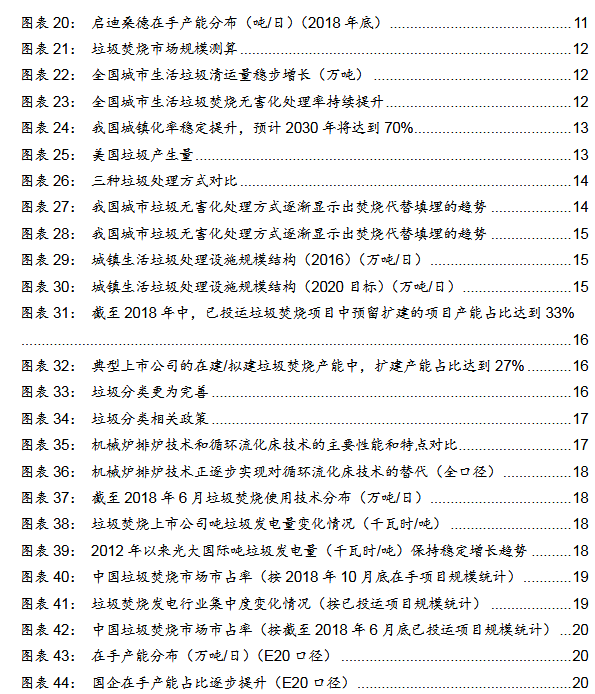 競(jìng)爭(zhēng)格局:集中度較高,國(guó)企競(jìng)爭(zhēng)力增強(qiáng)根據(jù)2018年10月的垃圾焚燒項(xiàng)目在手規(guī)模排序,目前垃圾焚燒行業(yè)主要的參與者包括:1)國(guó)企:光大國(guó)際、中國(guó)環(huán)境保護(hù)集團(tuán)、綠色動(dòng)力環(huán)保、皖能環(huán)保、康恒環(huán)境、北京控股、重慶三峰、上海環(huán)境、啟迪桑德、廣州環(huán)保、瀚藍(lán)環(huán)境等;2)民企:錦江環(huán)境、盛運(yùn)環(huán)保、中國(guó)