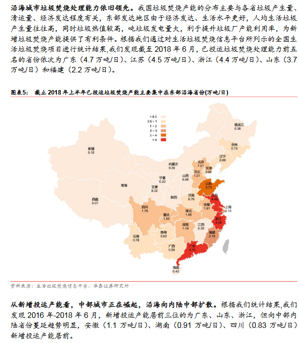 瀚藍(lán)環(huán)境的在手產(chǎn)能主要分布在福建省和廣東省,但在中部地區(qū)也已有一定規(guī)模的已投運(yùn)和在建/籌建項(xiàng)目;啟迪桑德的垃圾焚燒產(chǎn)能所覆蓋的省份數(shù)量?jī)H次于光大國(guó)際,除了在山東省的5800噸/日的產(chǎn)能外,啟迪桑德目前大規(guī)模布局中西部和東北地區(qū)。
