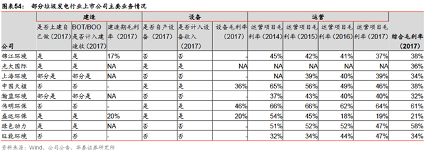 項(xiàng)目達(dá)產(chǎn)后主要收入來(lái)自發(fā)電收入,主要成本來(lái)自折舊、原材料和人工:首先假設(shè)該項(xiàng)目資金100%來(lái)自自有資金投資的情況下,則項(xiàng)目主要的收入、成本情況如下:1)收入:垃圾處置收入+發(fā)電收入。項(xiàng)目達(dá)產(chǎn)后,滿(mǎn)產(chǎn)狀態(tài)下可得出項(xiàng)目的年垃圾處理量,按照各個(gè)項(xiàng)目的垃圾處置費(fèi)(所列項(xiàng)目中最高為康恒寧波項(xiàng)目的149元/噸,最低為中國(guó)天楹延吉項(xiàng)目的58元/噸),則項(xiàng)目除增值稅后可測(cè)得年垃圾處置收入;按照0.65元/度的發(fā)電收入(部分項(xiàng)目比如康恒寧波項(xiàng)目、綠色動(dòng)力永嘉、綠色動(dòng)力海寧項(xiàng)目為0.66元/度),結(jié)合各項(xiàng)目噸垃圾發(fā)電量(所列項(xiàng)目中最高為綠色動(dòng)力海寧項(xiàng)目的410度/噸,最低為中國(guó)天楹延吉項(xiàng)目的280度/噸),結(jié)合個(gè)項(xiàng)目的上網(wǎng)比例(79%-85%之間),可測(cè)得扣除增值稅后年垃圾發(fā)電收入;可以看出,噸垃圾處置費(fèi)和噸垃圾發(fā)電量是決定收入端的主要變量。2)成本:以中國(guó)天楹延吉項(xiàng)目為例,根據(jù)其非公開(kāi)發(fā)行報(bào)告書(shū)披露,成本構(gòu)成中折舊占比47%(天楹按照資產(chǎn)預(yù)計(jì)使用壽命與該BOT項(xiàng)目特許經(jīng)營(yíng)權(quán)協(xié)議規(guī)定的經(jīng)營(yíng)期孰低確定,基本上折舊年限在20年)、原材料占比20%、工資及福利占比15%、維護(hù)費(fèi)用(考慮大修、年修及日常維護(hù)費(fèi)用)占比11%、污水及爐渣處置占比7%??傮w來(lái)看,成本端中折舊攤銷(xiāo)、原材料和人工占比在80%左右。