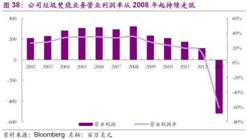 進一步分析,Wheelabrator營業(yè)收入走低的核心因素是垃圾焚燒發(fā)電上網(wǎng)電價的持續(xù)下跌。再加上Wheelabrator原來簽訂的數(shù)個高于現(xiàn)上網(wǎng)電價的長期合同到期,需要按現(xiàn)行電價重新續(xù)簽,公司認為Wheelabrator已無法為公司提供穩(wěn)定的收益,并在2013年確認了高達4.83億美元的商譽減值,隨后于2014年宣布剝離Wheelabrator的全部業(yè)務(wù)。
