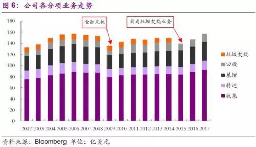 二是收購專業(yè)化的新生業(yè)務(wù)。 隨著固廢傳統(tǒng)市場業(yè)務(wù)趨于飽和,公司也在積極求變。一方面,公司利用自有團隊積極研發(fā)已有業(yè)務(wù)的轉(zhuǎn)型,另一方面,公司先后在2009至2016年,通過多次收購成熟的專業(yè)化新生公司,拓展了醫(yī)廢、有機垃圾、建筑垃圾、電子回收等市場,并取得了一定成績。需要注意的是,公司的以上收購雖涉及不同細分領(lǐng)域,但核心觀念一致,即加大資源回收再利用,這也契合美國固廢市場的轉(zhuǎn)型,進一步優(yōu)化完善固廢處理全產(chǎn)業(yè)鏈發(fā)展。