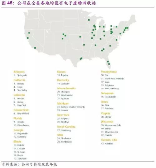 在電子廢物回收業(yè)務(wù)加速發(fā)展的同時,其他危廢處理也是公司關(guān)注的重點。公司的“At Your Door Special CollectionSM”正是專門為居民用戶處理危廢而推出的一站式服務(wù)。包括車用產(chǎn)品、電池、園林化學(xué)物質(zhì)、特別是熒光燈等危廢均可通過公司專用的危廢收集車上門收取。公司的固廢收集車(包括危廢)也是公司的一大亮點,截止2016年,已有多達18500輛使用天然氣驅(qū)動,在為環(huán)保服務(wù)的同時也真正做到了自我環(huán)保價值的體現(xiàn)。