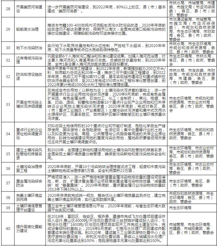 5.強(qiáng)化各類水體治理。進(jìn)一步開展美麗河湖建設(shè),到2022年年底,80%以上的區(qū)、縣(市)基本建成“美麗河湖縣”。加快船舶水治理,推進(jìn)本市籍100-400總噸內(nèi)河貨船生活污水防污染改造,2020年年底前經(jīng)改造仍不能達(dá)到要求的,限期予以淘汰;全面完成港口船舶污染物的接收設(shè)施建設(shè),保障船舶污染物可送岸接收處置。加強(qiáng)地下水污染防治,實(shí)行地下水取用總量控制和水位控制,嚴(yán)控地下水超采,到2020年年底,地下水質(zhì)量考核點(diǎn)位水質(zhì)級(jí)別保持穩(wěn)定。加強(qiáng)陸海統(tǒng)籌,深入推進(jìn)近岸海域污染防治,鞏固全部6個(gè)入海排污口整治和標(biāo)準(zhǔn)化建設(shè)成果。加強(qiáng)入海河流治理,對(duì)主要入海河流和入海溪閘實(shí)行總氮、總磷排放總量控制,到2020年年底,全市1條主要入海河流總氮濃度達(dá)到目標(biāo)要求。加強(qiáng)防洪排澇設(shè)施改造,推進(jìn)平原骨干排澇工程建設(shè),到2022年年底,新增強(qiáng)排能力200立方米/秒,排澇能力總體達(dá)到20年一遇;推進(jìn)江河干堤加固工程建設(shè),到2022年年底,完成江河干堤加固55公里,基本實(shí)現(xiàn)城市建成區(qū)和重點(diǎn)鎮(zhèn)所在防洪閉合圈全封閉;完成1000處水利工程標(biāo)準(zhǔn)化管理創(chuàng)建。