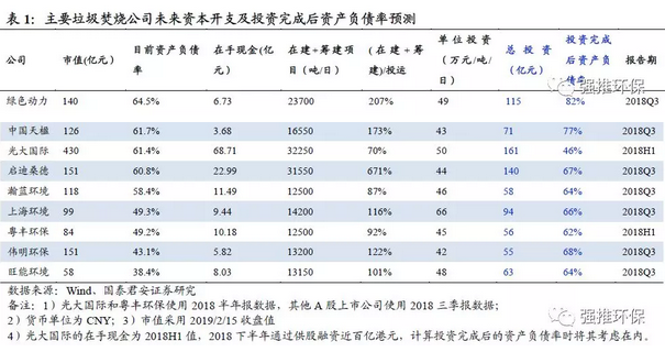光大國際:考慮到供股募資,在預(yù)計(jì)資本開支都完成后,資產(chǎn)負(fù)債率將由2018H1的61%降低到46%,這主要是由于2018下半年公司進(jìn)行了大規(guī)模的供股募資百億港元,在手現(xiàn)金充沛。強(qiáng)大的融資能力也是公司的核心競(jìng)爭(zhēng)力之一,為項(xiàng)目落地提供充分支持。