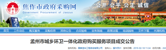 據(jù)悉,項(xiàng)目的服務(wù)內(nèi)容為對(duì)孟州市城區(qū)及11個(gè)鄉(xiāng)鎮(zhèn)辦事處清掃保潔、垃圾清運(yùn)等工作。