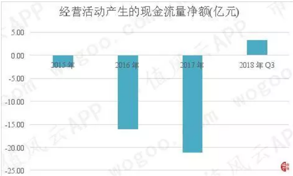 盛運(yùn)環(huán)保2015年至2018年前3季度,經(jīng)營活動(dòng)產(chǎn)生的現(xiàn)金流量凈額分別為-2.51億元、-16.08億元、-21.14億元和3.34億元,累計(jì)金額為-36.39億元,換句話說,公司的經(jīng)營活動(dòng)并沒有給公司帶來凈的現(xiàn)金流入,反而加大了公司的現(xiàn)金凈流出。