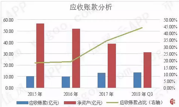 盛運(yùn)環(huán)保2015年末至2018年3季度末的應(yīng)收賬款分別為10.38億元、9.96億元、13.39億元和13.73億元,占公司凈資產(chǎn)的比重分別為18.37%、19.10%、34.40%和43.91%,占比持續(xù)增加,一定程度上表明公司的應(yīng)收賬款催收不力,現(xiàn)金回款質(zhì)量在逐步變差。