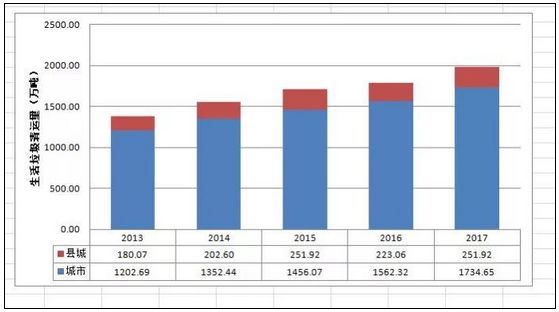 上圖:江蘇省生活垃圾清運量統(tǒng)計,來源:住建部城鄉(xiāng)建設統(tǒng)計年鑒