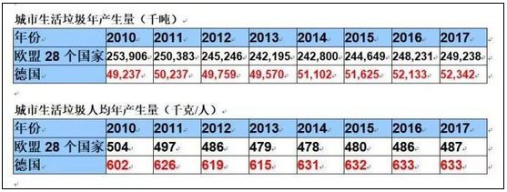 上表:歐盟、德國生活垃圾量統(tǒng)計 來源:EUROSTAT