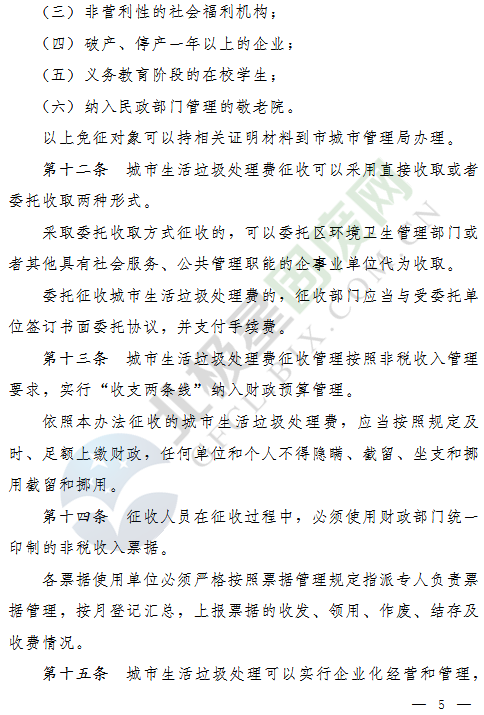(十)建筑垃圾、渣土應繳納生活垃圾處理費,每噸5元。
