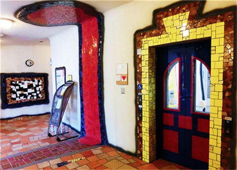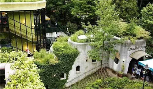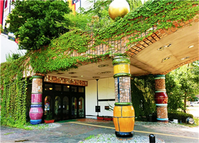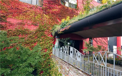 煙囪雖然有點(diǎn)“遺憾”,但在其他地方,你依舊能感受到百水先生飽滿豐盈的想象力和那顆炙熱的童心:入口處的爬墻虎和各種植被環(huán)繞的樣子,很容易令人想到三鷹的吉卜力美術(shù)館;