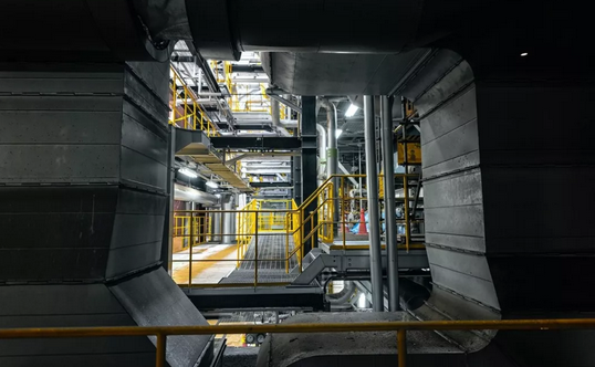 為了不讓這些臭氣泄露到室外,在這個(gè)巨型儲(chǔ)池的頂部安裝了強(qiáng)力抽風(fēng)機(jī),把臭氣收集起來后,再經(jīng)過預(yù)熱程序,最終通過專門的管道送往焚燒爐的底部,作為燃燒用的空氣再利用,這樣既解決了臭氣外泄的問題,又解決了燃燒用空氣的問題,是實(shí)實(shí)在在的“一舉兩得”。