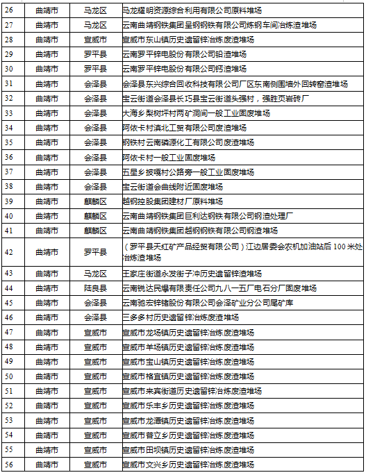 云南省工業(yè)固體廢物堆存場所環(huán)境整治清單(185個(gè))