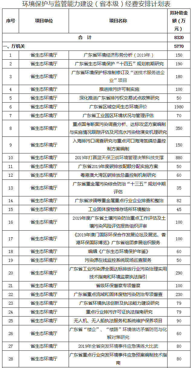近日,廣東省生態(tài)環(huán)境廳發(fā)布了廣東省生態(tài)環(huán)境廳辦公室關(guān)于2019年打好污染防治攻堅(jiān)戰(zhàn)專(zhuān)項(xiàng)資金安排計(jì)劃的公示,全文如下: