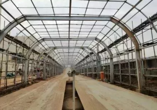 2、煙氣處理:灰渣輸送機(jī)安裝完成80%;屋面梁吊裝3榀;二期反應(yīng)塔錐體組拼完成;煙氣處理外保溫架體搭設(shè)完成;