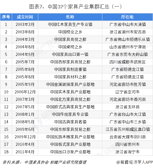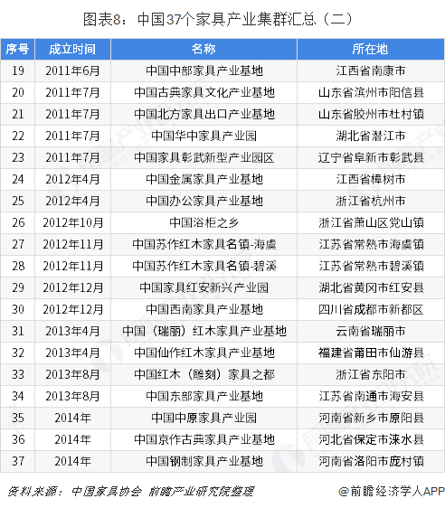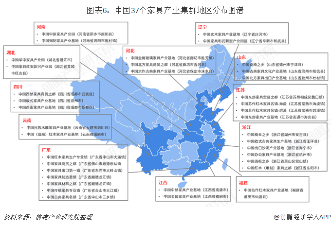 中國37個(gè)家具產(chǎn)業(yè)集群地區(qū)分布圖譜