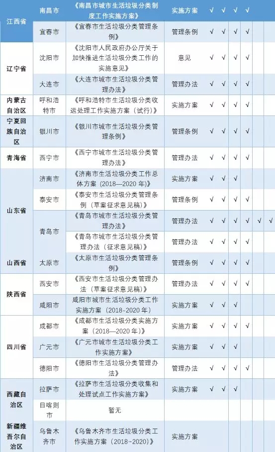 【附】46個(gè)重點(diǎn)城市垃圾分類專項(xiàng)文件出臺(tái)情況統(tǒng)計(jì)表