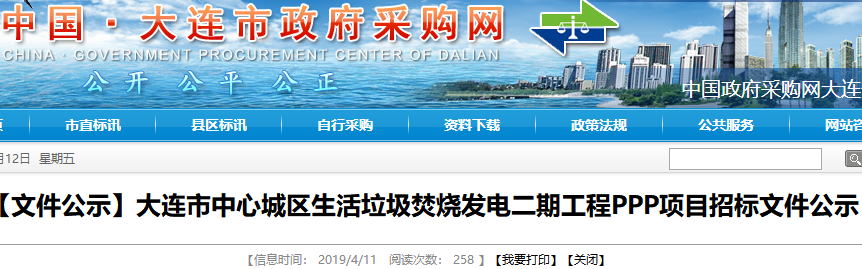中國(guó)固廢網(wǎng)獲悉,4月11日,遼寧省大連市中心城區(qū)生活垃圾焚燒發(fā)電二期工程PPP項(xiàng)目發(fā)布招標(biāo)文件公示。