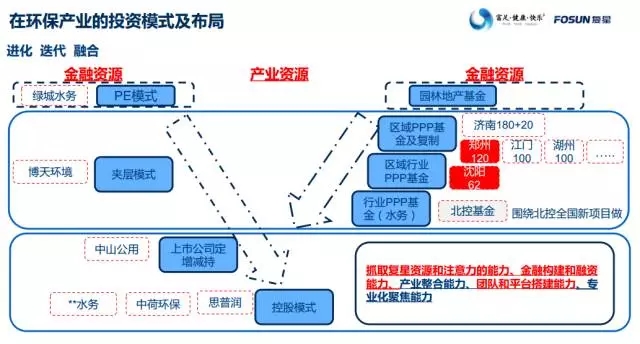戴海峰在《環(huán)保投資熱下的冷思考》演講中提出:“環(huán)保+”成為當(dāng)下中國資本市場風(fēng)口之一,超過500億市值的環(huán)保上市公司已經(jīng)出現(xiàn);“復(fù)星集團(tuán)投的不僅僅是錢,更多的是多資源對接、上下游合作等,從而創(chuàng)造更多的產(chǎn)業(yè)協(xié)同價(jià)值?!碧岢鲋挥挟a(chǎn)業(yè)整合,利用大資金、大平臺、強(qiáng)團(tuán)隊(duì)、大生態(tài)才能創(chuàng)造機(jī)會和價(jià)值。