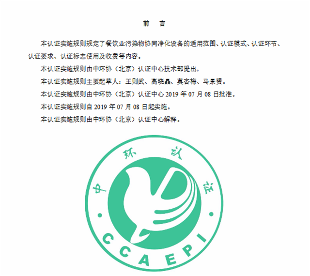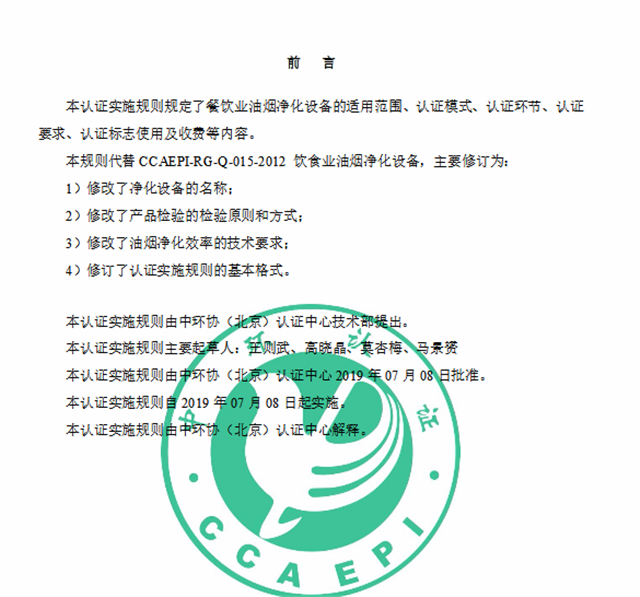 中環(huán)協(xié)(北京)認(rèn)證中心制修訂餐飲業(yè)大氣污染物凈化設(shè)備認(rèn)證實(shí)施規(guī)則
