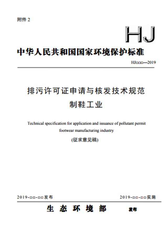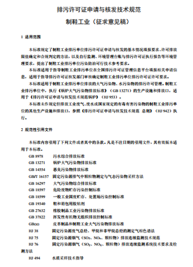 2.排污許可證申請與核發(fā)技術(shù)規(guī)范 制鞋工業(yè)(征求意見稿)