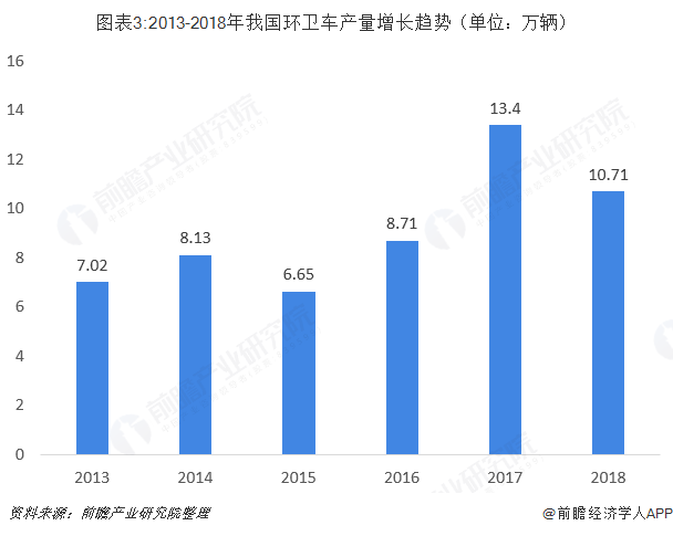 根據(jù)中國專用汽車行業(yè)月度數(shù)據(jù)服務報告的統(tǒng)計數(shù)據(jù),2013-2018年我國環(huán)衛(wèi)車輛產(chǎn)量呈快速增長趨勢。2018年我國環(huán)衛(wèi)車產(chǎn)量達到10.71萬輛。