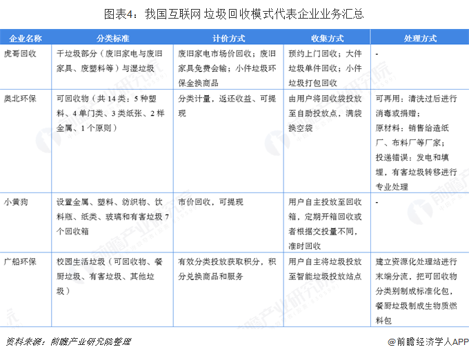 2017年,國(guó)家發(fā)改委、住建部制定的《生活垃圾分類制度實(shí)施方案》中鼓勵(lì)“互聯(lián)網(wǎng)+”模式等創(chuàng)新機(jī)制,來(lái)實(shí)現(xiàn)線上信息流與線下物流的統(tǒng)一。垃圾分類主要涉及到分類投放、分類收集、分類運(yùn)輸和分類處理四個(gè)環(huán)節(jié),各類平臺(tái)及APP可以在互聯(lián)網(wǎng)技術(shù)的加持下,在前端協(xié)助居民進(jìn)行垃圾分類,在中端實(shí)施有效監(jiān)控、在終端促進(jìn)垃圾的資源化利用。目前,國(guó)內(nèi)互聯(lián)網(wǎng)+垃圾分類行業(yè)中具有代表性的企業(yè)有小黃狗環(huán)保科技有限公司、成都奧北環(huán)保科技有限公司、浙江虎哥環(huán)境有限公司以及廣船國(guó)際環(huán)??萍加邢薰尽F渲行↑S狗環(huán)??萍加邢薰疽呀?jīng)進(jìn)駐了35個(gè)城市,覆蓋8649個(gè)小區(qū),擁有將近380萬(wàn)的用戶。