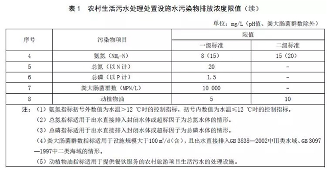本標(biāo)準(zhǔn)適用于規(guī)模小于500 m3/d(不含)的農(nóng)村生活污水處理處置設(shè)施水污染物排放管理,規(guī)模大于500 m3/d(含)的農(nóng)村生活污水處理處置設(shè)施執(zhí)行GB 18918中一級(jí)標(biāo)準(zhǔn)的A標(biāo)準(zhǔn)要求。