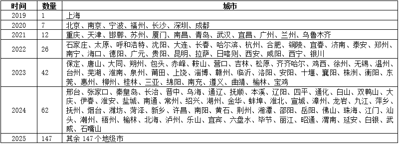 據(jù)統(tǒng)計(jì),截至2017年底,我國現(xiàn)有餐飲垃圾處理產(chǎn)能僅為3萬噸/日,垃圾分類政策的強(qiáng)制推行將提升廚余垃圾收集量,若按照全國城市1.7億噸/年[1]的濕垃圾產(chǎn)生量來看,則需要46.6萬噸/日的餐廚垃圾處理能力,全國城市濕垃圾處理缺口約43.6萬噸/日??紤]到政策實(shí)際推行情況,保守假設(shè)垃圾分類年化市場釋放節(jié)奏如下表。